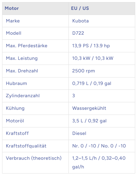 ✔ Leistungsstarker Kubota-Dieselmotor (Euro 5 zertifiziert)