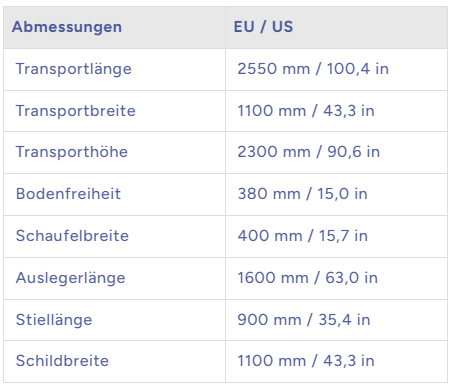 Arbeitsgewicht: Ca. 1.250 kg – leicht zu transportieren, stark im Einsatz